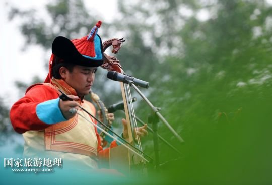 9月17日,蒙古國(guó)國(guó)家歌舞團(tuán)成員在現(xiàn)場(chǎng)演奏馬頭琴。