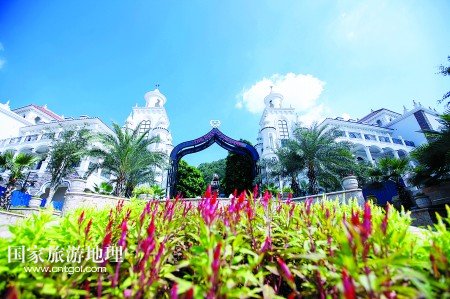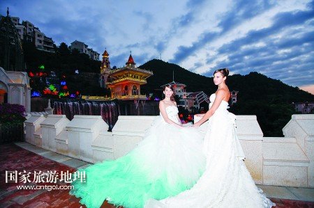 乘著電瓶車,從客天下廣場穿過雅致的圣山湖住宅區(qū),赫然出現(xiàn)在眼前的卻是大型婚禮殿堂,純歐式的建筑群隱匿在青山綠水中:乳白色的圓形屋頂、七彩斑斕的玻璃窗、富麗堂皇的大吊燈,見證了一對又一對新人走進(jìn)幸福的殿堂。在充滿異域風(fēng)情的幸福里大街,蘇格蘭風(fēng)笛表演、皇家馬車、中世紀(jì)格調(diào)的咖啡館,一幕又一幕,讓人恍若時(shí)空交錯(cuò)。
