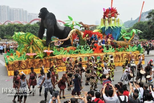 國家旅游地理 廣西柳州10月1日訊 9月30日,一輛巡游的花車經(jīng)過廣西柳州市駕鶴路。 當(dāng)日,2013中國柳州國際水上狂歡節(jié)以一場“狂歡大巡游”拉開帷幕。10輛造型各異的花車和國內(nèi)外各具特色的演藝團體為市民和游客帶來一場歡樂盛宴。