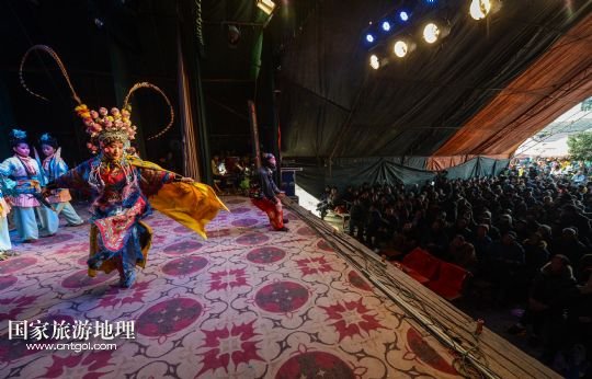 國家旅游地理 浙江金華1月3日訊 1月3日,武義壺山婺劇團在武義縣三板橋村演出,此次演出要連演3天。新年伊始,浙江省金華市武義縣的各個鄉(xiāng)鎮(zhèn)迎來了熱鬧的“婺劇迎春”,通過政府、企業(yè)、百姓多方出資的方式,邀請數十支婺劇團在武義各個鄉(xiāng)鎮(zhèn)演出, 幾乎場場爆滿。