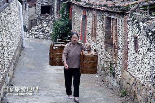 5月11日,在福建泉州豐澤區(qū)東海街道蟳埔社區(qū),一位蟳埔女挑著擔(dān)子走在村道上,村道兩旁是古老的蠔殼厝。宋元時(shí)期,這里是泉州“海上絲綢之路”的重要港口,遠(yuǎn)洋航船載著絲綢、茶葉、瓷器等貨物運(yùn)往世界各地,返程時(shí)壓船的海蠣殼成了村民們的建筑材料。