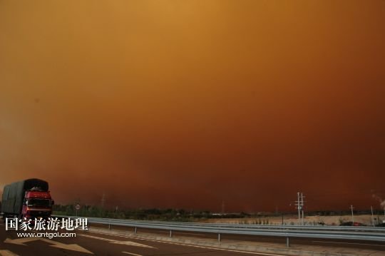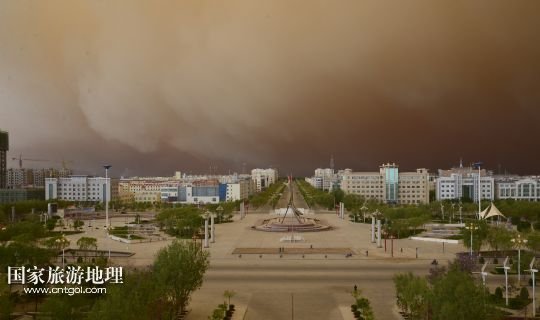 國家旅游地理 甘肅玉門5月23日訊 5月23日,在甘肅玉門市,突如其來的沙塵籠罩了整個城市。當(dāng)日上午,受新疆低槽冷空氣的影響,甘肅玉門境內(nèi)天空出現(xiàn)罕見的云層奇景和沙塵天氣,原本非常晴朗的藍(lán)天,霎時天昏地暗,同時伴有6至7級西風(fēng),能見度只有500米。新華社發(fā)(楊旭升 宋常青 攝)
