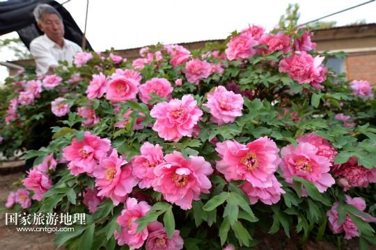 國(guó)家旅游地理 內(nèi)蒙古赤峰5月23日訊 5月22日在內(nèi)蒙古寧城縣長(zhǎng)皋村烏氏家族的庭院里拍攝的盛開的牡丹花。在內(nèi)蒙古赤峰市寧城縣小城子鎮(zhèn)長(zhǎng)皋村,有一株300多歲“高齡”的牡丹成為當(dāng)?shù)匾痪啊T撝昴档ぶΩ呒s1.7米,直徑約3米,康熙年間作為皇家嫁妝移植至此,雖經(jīng)300余年的風(fēng)風(fēng)雨雨,如今仍不失國(guó)色天香,每年吸引大批游人前來(lái)觀賞。新華社發(fā)(白鐵軍 攝)