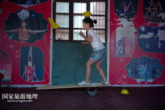 國家旅游地理 安徽阜陽5月31日訊 安徽省潁上縣三王村鄉(xiāng)村雜技學(xué)校成立于2007年。每年都有百余名農(nóng)村孩子來到這里學(xué)習(xí)雜技。