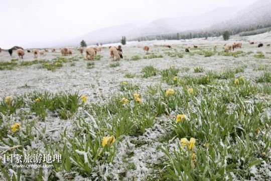 國家旅游地理 新疆哈密5月31日訊 5月31日,新疆哈密一位牧民在雪中放牧。當(dāng)日,受冷空氣影響,新疆哈密北部沿天山一帶出現(xiàn)了降雪降溫天氣,給五月的天山披上銀裝。 /新華社發(fā)(普拉提 攝)