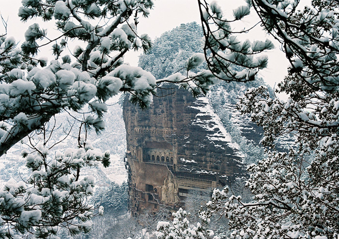 圖為冬日的麥積山景色