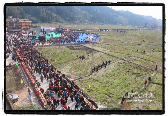 今年黎平侗年節(jié),除了延續(xù)亙古以來老百姓過侗年的各項(xiàng)傳統(tǒng)習(xí)俗活動(dòng)外,還有“天下侗家年”大型侗族史詩情景歌舞展演、侗族萬人長桌宴、招商引資推介會(huì)、七彩田園采摘體驗(yàn)、百村集市商品展銷、侗文化研討會(huì)、楊再思文化交流研討會(huì)等多項(xiàng)主題活動(dòng),其中,主打主推的“最大合攏宴”(萬人長桌宴)品牌,得到基尼斯紀(jì)錄總部到現(xiàn)場認(rèn)定,以1700桌合攏宴,總長3.7公里,10380人同桌就餐,創(chuàng)歷史之最,成功載入《基尼斯紀(jì)錄大全》,吸引數(shù)萬旅游客到場親自見證、參與、感受和體驗(yàn)這一千載難逢,氣勢恢宏的盛況。