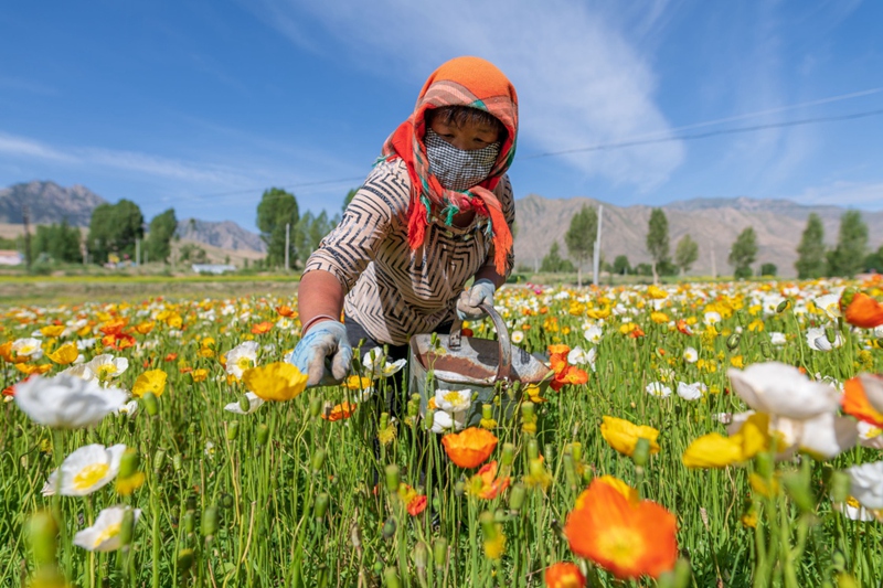 時值盛夏,地處祁連山北麓高海拔山區(qū)的甘肅省高臺縣新壩鎮(zhèn)紅沙河村種植的虞美人繽紛綻放,形成花海景觀。近年來,高臺縣新壩鎮(zhèn)將花卉蔬菜制種作為特色產(chǎn)業(yè)來抓,積極引導農(nóng)戶規(guī)?;⒓谢N植,成為當?shù)剞r(nóng)業(yè)增效、農(nóng)民增收的支柱產(chǎn)業(yè)之一。