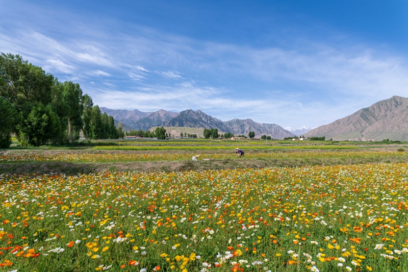 時值盛夏,地處祁連山北麓高海拔山區(qū)的甘肅省高臺縣新壩鎮(zhèn)紅沙河村種植的虞美人繽紛綻放,形成花海景觀。近年來,高臺縣新壩鎮(zhèn)將花卉蔬菜制種作為特色產(chǎn)業(yè)來抓,積極引導農(nóng)戶規(guī)模化、集中化種植,成為當?shù)剞r(nóng)業(yè)增效、農(nóng)民增收的支柱產(chǎn)業(yè)之一。